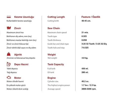 AGROMEC Motorlu Ağaç Kesme Testeresi AG-45Y